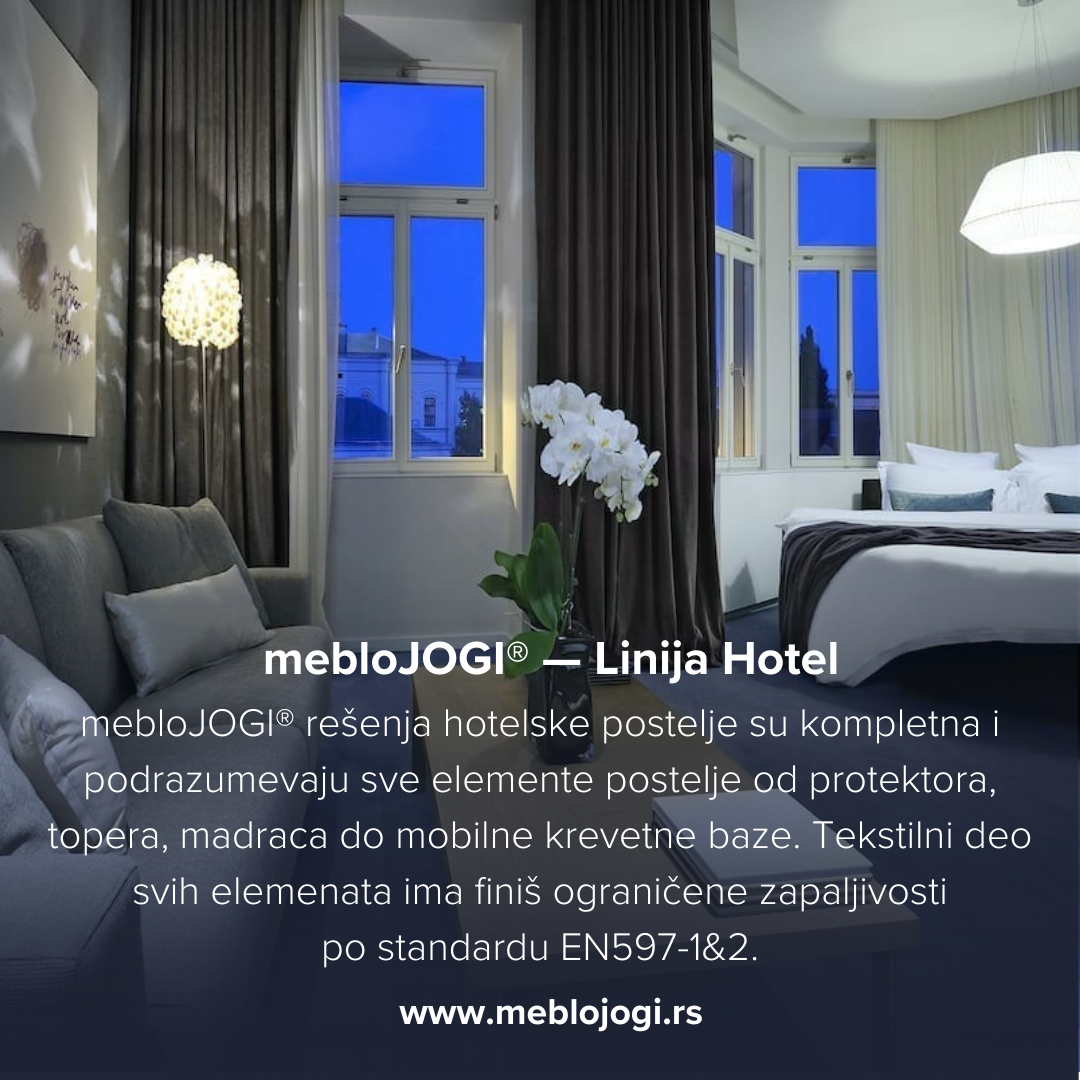 Naša rešenja hotelske postelje su kompletna i podrazumevaju sve elemente postelje od protektora, topera, madraca do mobilne krevetne baze… tekstilni deo svih elemenata ima finiš ograničene zapaljivosti po standardu EN597-1&2.